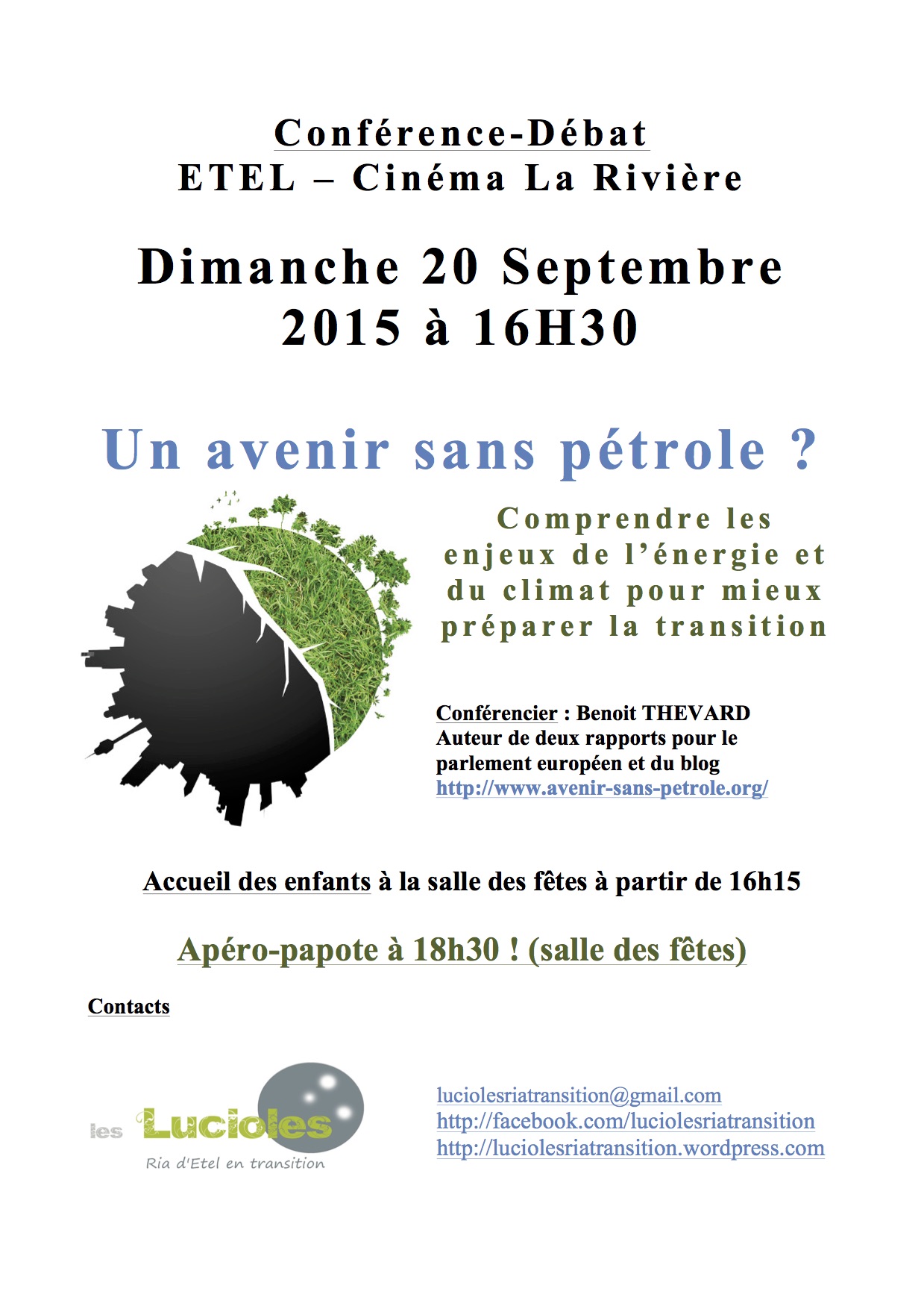 Etel, le 20 septembre 2015 – Conférence: Un avenir sans pétrole ?