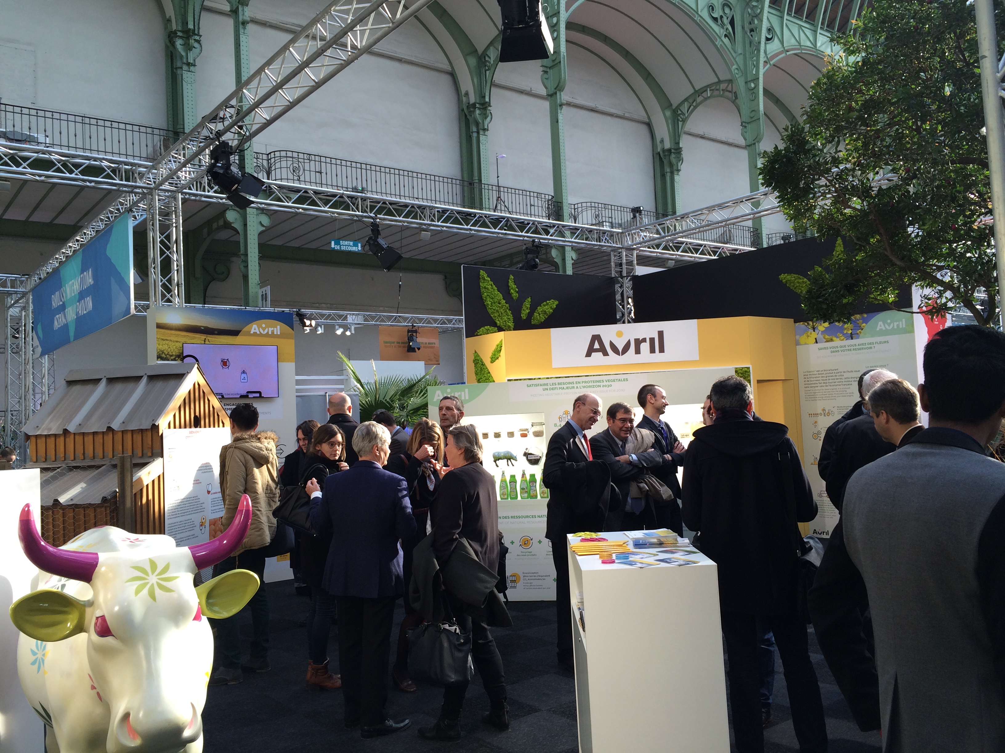 Exposition COP 21 au Grand Palais : Une file d’attente impressionnante patiente pour découvrir une exposition sur la COP 21. Dès l’entrée, le visiteur est assailli par les panneaux de Véolia, Engie (ex Gaz de Suez), ou même Avril (le groupe de Xavier Beulin). Quelques associations dont Good Planet, ICDD, ATD Quart Monde…), de nombreuses salles de conférences pour présenter des « solutions », souvent techniques (bus propres, architecture durable, stockage d’énergie…) et des financeurs.