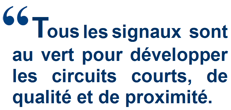 La loi d’avenir pour l’agriculture, l’alimentation a fait de l’ancrage territorial de la production l’un des objectifs de la politique agricole et alimentaire. Le marché alimentaire bio, quant à lui, a été multiplié par 4 en plus de 10 ans. Aujourd’hui, tous les signaux sont au vert pour développer les circuits courts, de qualité et de proximité. Sur les territoires, une multitude de moyens de commercialisation
