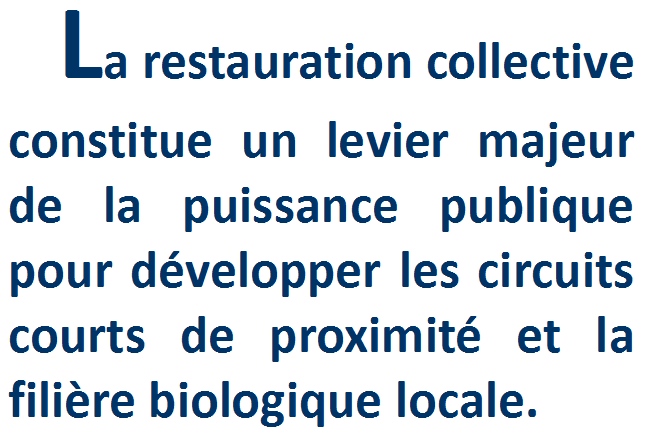 La restauration collective sert dix millions de repas par jour. Elle constitue un levier majeur de la puissance publique pour développer les circuits courts de proximité et la filière biologique locale. « Produire local pour manger local », il s’agit bien de changer d’échelle en régionalisant les filières agricoles et agro-alimentaires. C’est possible et bénéfique pour l’emploi, l’environnement et le lien social. La consommation locale a un effet immédiat sur le développement de l’économie locale, du tourisme et de l’attractivité du territoire par la valorisation des savoir-faire locaux et du patrimoine. Si les ventes des produits en circuits courts et locaux atteignaient 10 % du chiffre d’affaires global de l’alimentation, les circuits courts et de proximité pourraient créer entre 80 000 et 100 000 emplois, des emplois non-délocalisables et valorisants. C’est une chance à saisir pour notre région, frappée de plein fouet par les crises successives dues à un modèle agricole à bout de souffle, basé principalement sur des productions à faible valeur-ajoutée destinées à l’export.