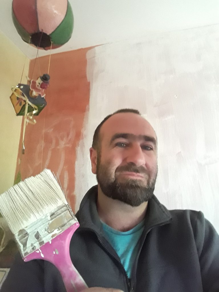 => Julian se prend en photo avec le pinceau près du mur (toujours sans mettre de peinture sur son téléphone ;-)