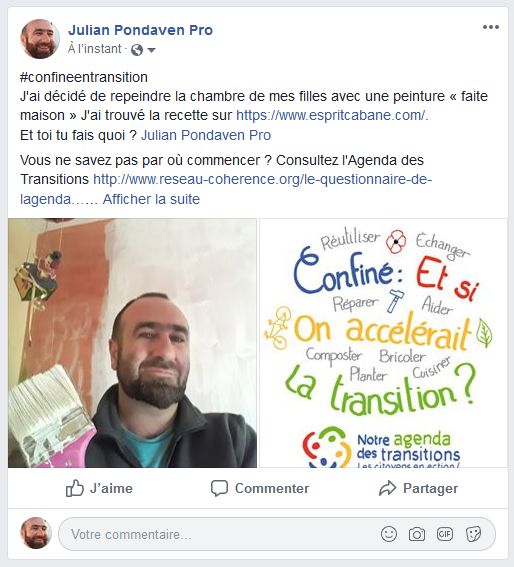 Au moment du déconfinement, nous vous invitons à refaire le tour des propositions de l’agenda pour voir vos progrès et si vous le souhaitez, nous en faire part. Nous pourrons alors faire une news letter spéciale sur vos contributions ;-)