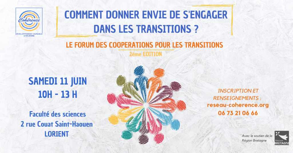 Le Réseau Cohérence organise la 2ème édition de ce qui était le « Forum des initiatives citoyennes » et qui devient le « Forum des coopérations pour les transitions »