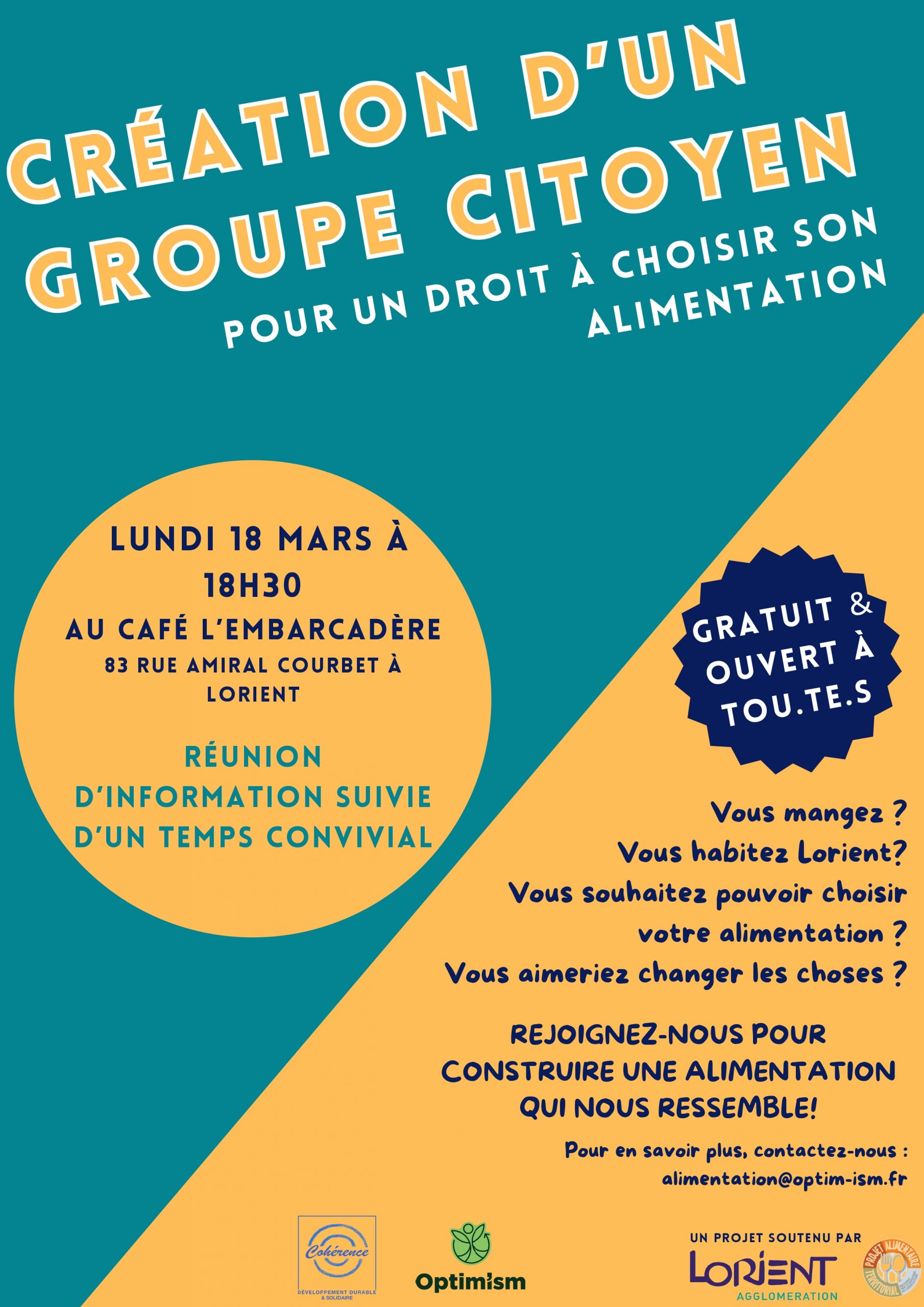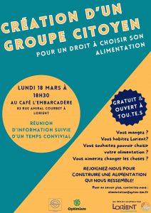 Depuis plusieurs mois, un collectif regroupant des citoyens, les associations Optim’ism et Réseau Cohérence et des centres sociaux Lorientais, propose d’accompagner un groupe d’habitant vers un droit à l’alimentation choisie pour tous!