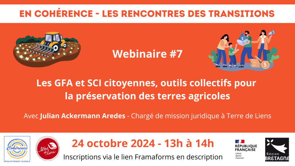 Dans un contexte où la pression sur les terres agricoles s’intensifie, la préservation de notre patrimoine agricole est devenue plus que jamais une priorité. Ce webinaire propose d’explorer des solutions citoyennes et collectives pour protéger ces terres vitales, en mettant l’accent sur les Groupements Fonciers Agricoles (GFA) et les Sociétés Civiles Immobilières (SCI) citoyennes.